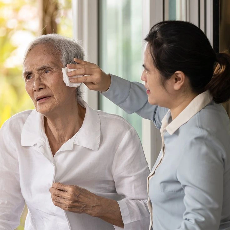 Todas las mañanas, se despierta temprano para comenzar el día del cuidado de la madre limpiando el cuerpo de su madre contoallitas húmedas (viejos). Como su madre está postrada en cama durante mucho tiempo y su piel es sensible y propensa a las infecciones, elige usar toallitas en lugar del método de limpieza tradicional.